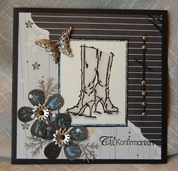 Jeg er her og jeg kreerer, men ikke flink nok til å blogge resultatene nei *kremt* Mye av tiden går til konfirmasjonsforberedelser nå. Har brettet 50 servietter til skjorter, klipt til slips som bordkort på disse skortene og stanset ut navnene på ale gjestene til disse. Hittil er 12 kubbelys dekorert med kartong, blomster og metallpynt - så litt har det vært å pusle med.. he he